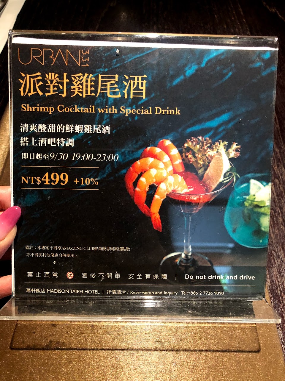 Urban 331位於慕軒飯店的1樓,一進大廳就可以看到。剛好之前在旅展買的餐劵,每周五、六晚上有義大利式自助餐,並加上紅白酒、啤酒暢飲(服務生倒酒十分勤快),這點值得高度稱讚。