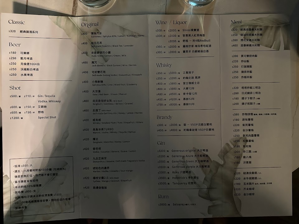 進來後真的處處感到驚艷,原本以為是網美店但說真的,酒跟食物都非常美味好喝有水準!服務更是沒話說;在很多小細節裡面看到他們的用心認真!馬上預約了其他朋友再來~我只希望這家店不要太爆紅,不然以後就無法隨時來了? …