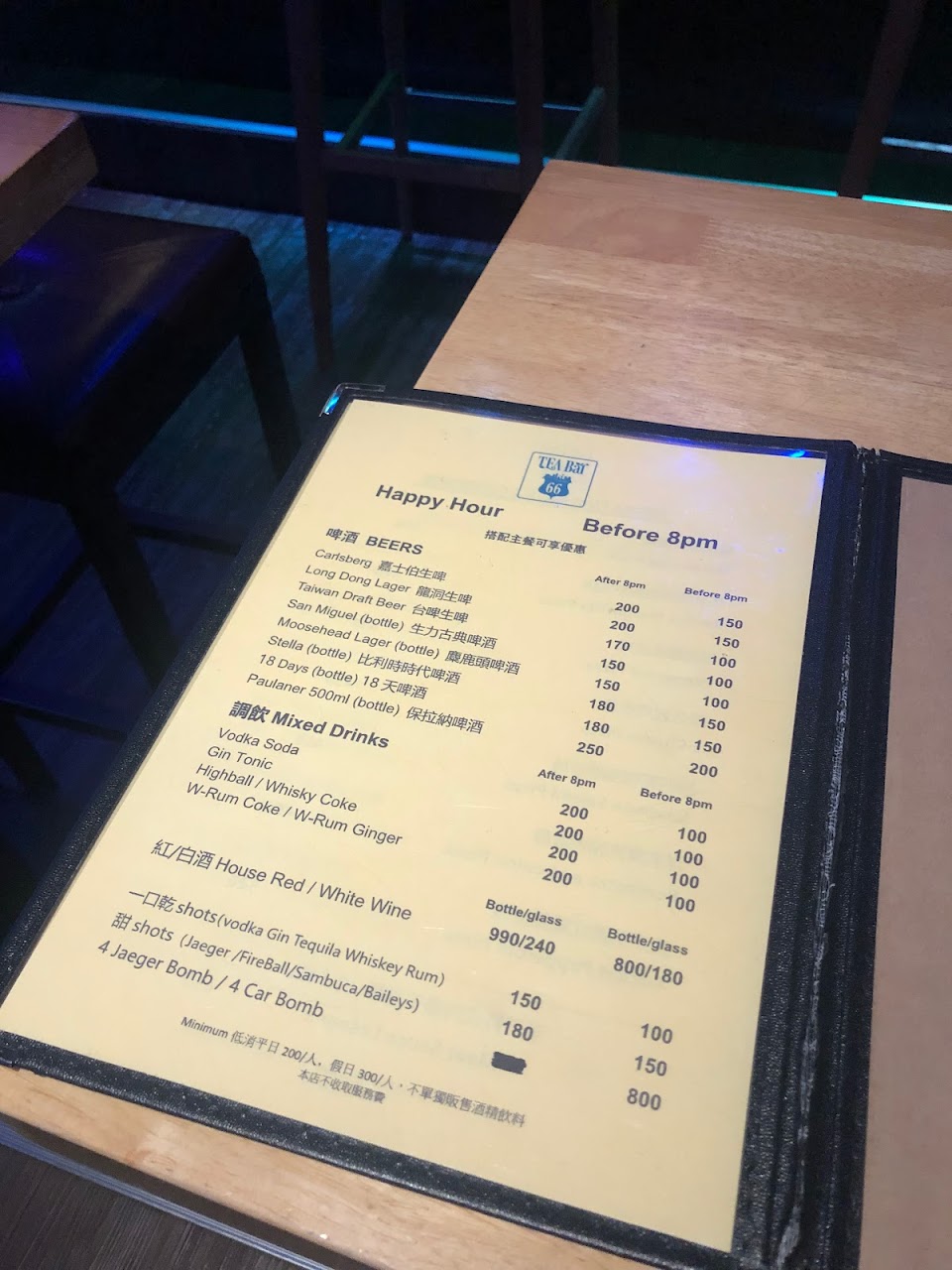 換了老闆…啤酒100 ,紅白酒150。這是外國酒吧價…。實在…