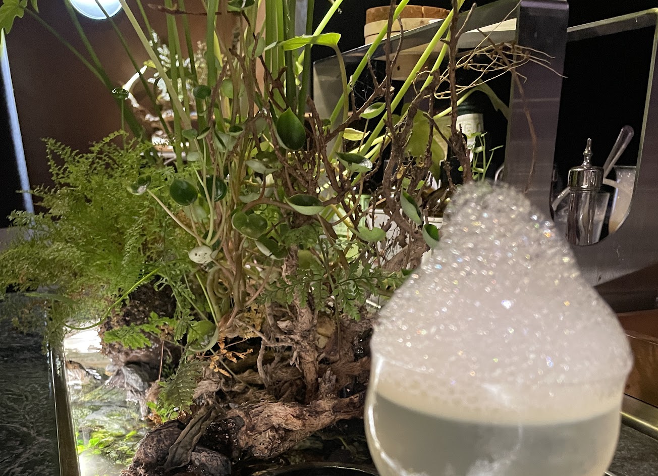 是一間在地下室的酒吧,吧台桌有一個小生態池。 酒單主要是以自然環境為主題。 喜歡迷霧森林 舒服的草本以及木質的風味 酒體乾淨澄清 層次豐富 一旁的裝飾是乾燥的苔蘚 雖然不知道預期有沒有要客人把苔蘚吃掉 但我自己是很喜歡 另一杯很喜歡梯田。靄 入口也是清新的草本調 接著出來的是淡淡的乳酸 最後是草本調的收尾 很喜歡的搭配 希望很快又有機會可以再過來