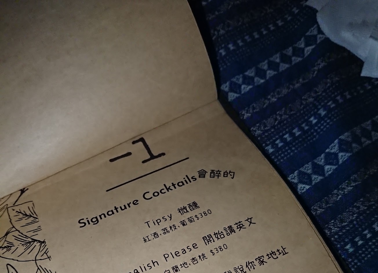 難忘的經驗 負壹冰茶喝兩杯大家都超嗨 cp值超高 也蠻好喝的 非常不好意思 朋友吐爆還打翻杯子 店員不但沒有多收清潔費感覺上還比較擔心我們有沒有受傷 整個超貼心 環境跟酒無可挑剔 之後應該會很常來 超過一百分的酒吧