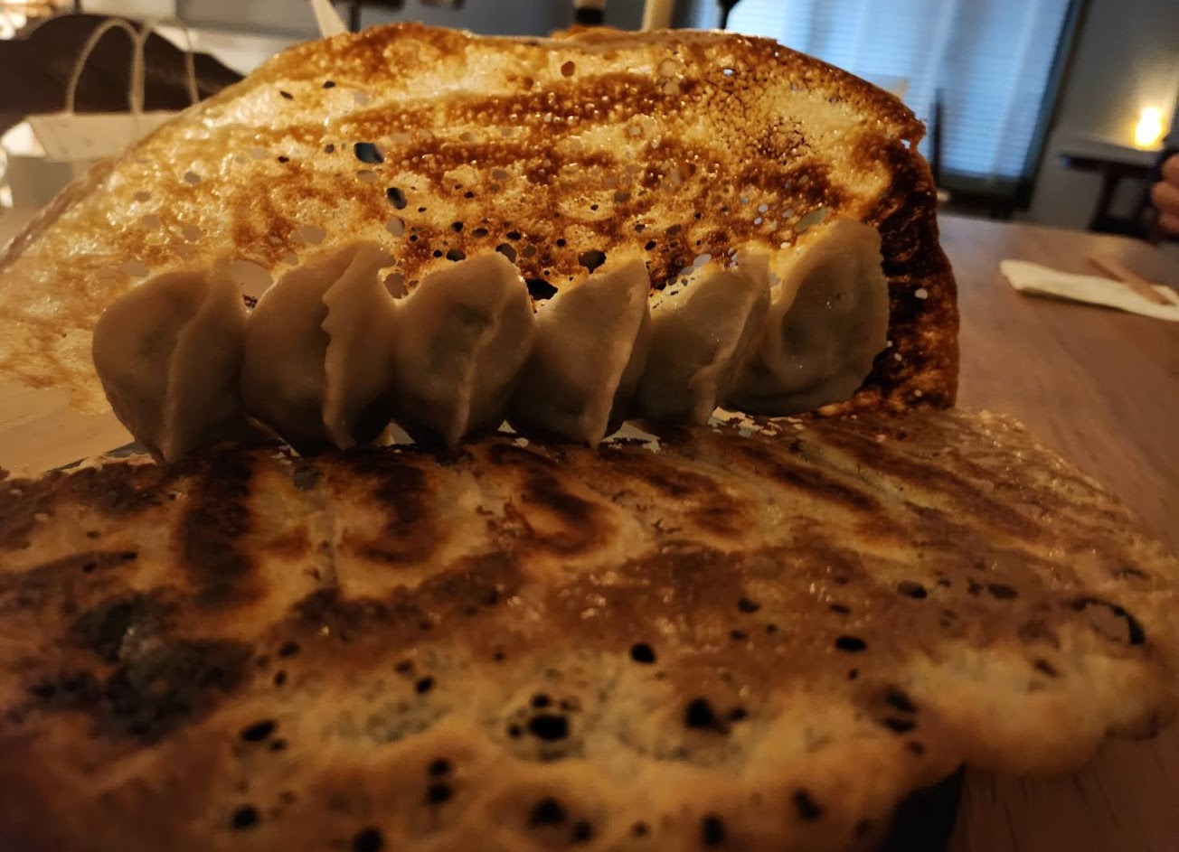 煎餃是招牌,玻璃門上有冰花煎餃bar的字樣? 天使麵也非常好吃