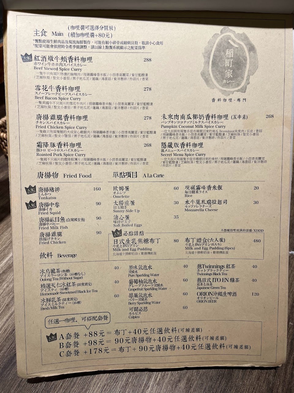 2024最新在地推薦餐廳的菜單_稲町家香料咖哩 (南西二號舖)的菜單、圖片