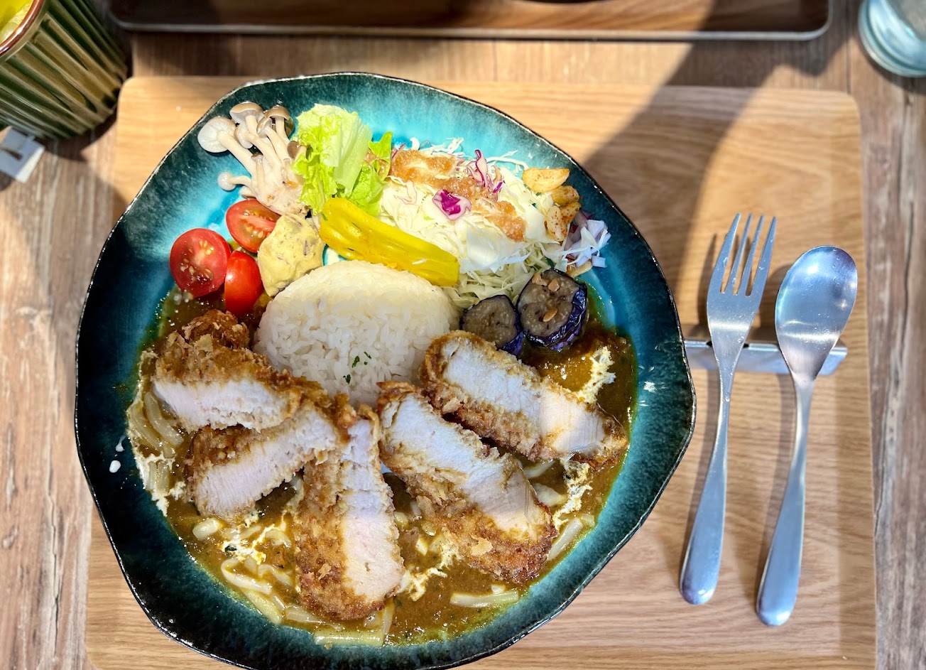 米饭是冷的,温的炸猪排偏柴干老,咖喱偏咸腻口,入座用餐限制70分钟出餐等30分钟真的有点…