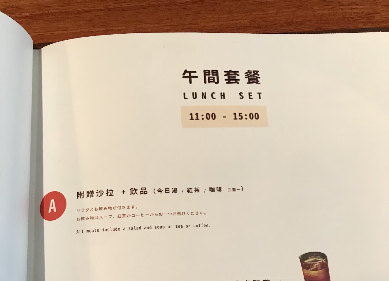 所有的菜餚都配有一小碗沙拉和每日的湯或飲料