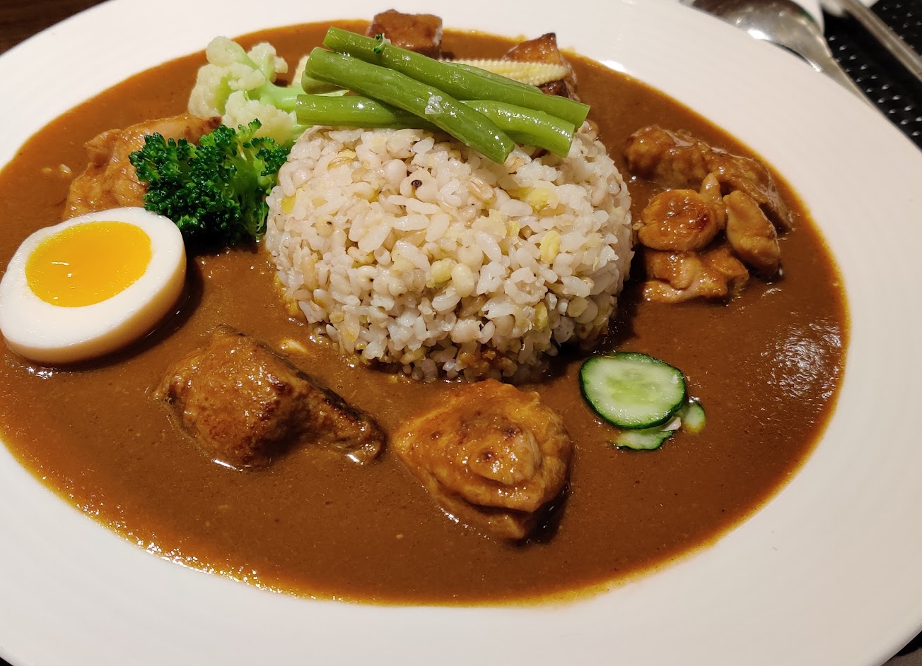 點了雞肉咖哩,口味相當滿意。咖哩是走稠醬路線但吃完口中氣味負擔不大,特色除了擺盤色澤賣相優之外,飯是穀飯相當有Q勁,量不多但有飽足感。