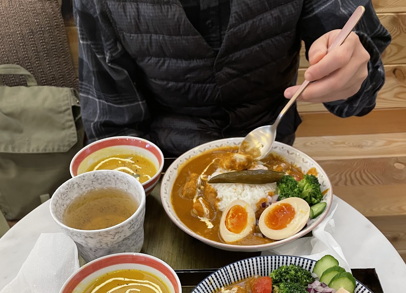 餐點咖喱牛肉($220)還不錯吃 但注意真的有辣。溏心蛋要另外➕$30(等於一顆$30元)濃湯很好喝