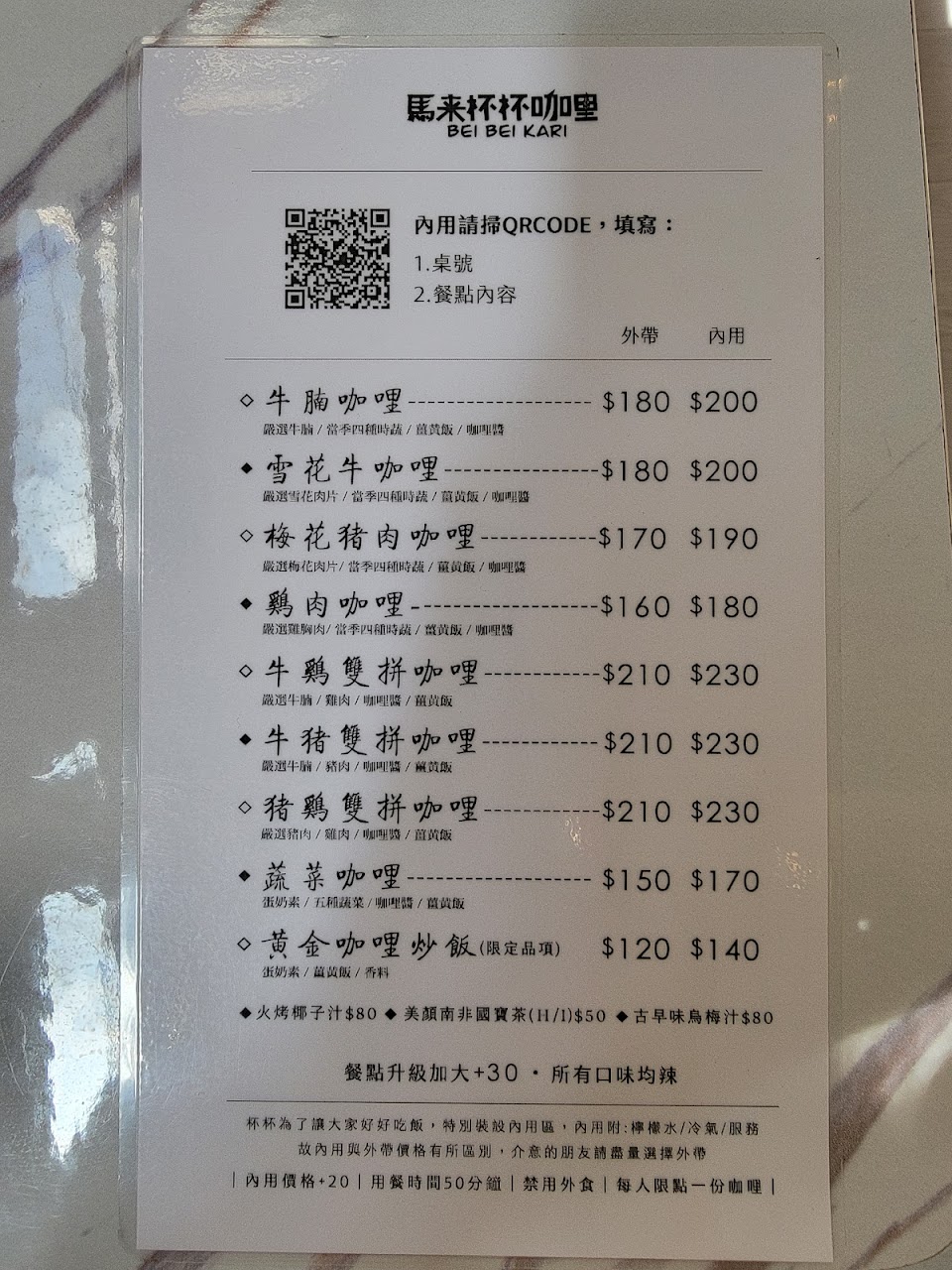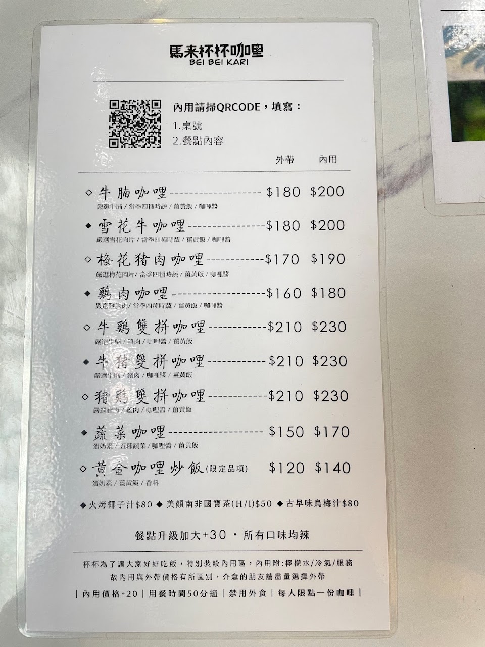 外帶價會比內用便宜$20