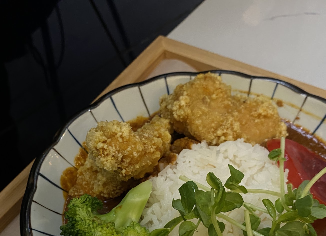 好地方,舒適的設計?咖哩。咖哩的風格很有趣,他們用的是泰國米,咖哩的來源與日本的不同。它來自馬來西亞。你可以嚐到食材的新鮮感。