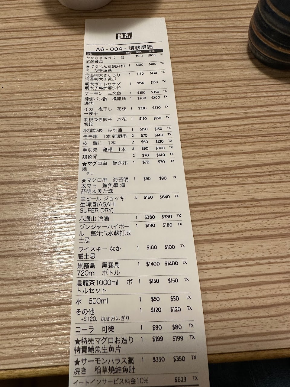 很久沒遇到整間店都帥哥(大部分都是日本人)從外場帥到內場(當然也有本地的帥哥幫大家服務。人均大概1000的居酒屋,入門有兩間包廂大概可以坐6-8人/間,需要脫鞋才能進包廂。很日式的風格。