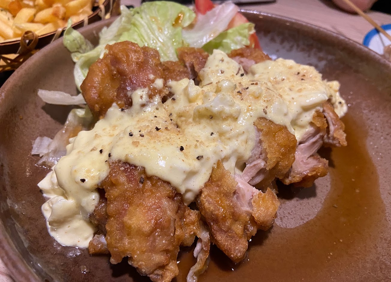 炸雞意外的好吃 雞肉很嫩不油膩 配的是雞蛋沙拉醬。