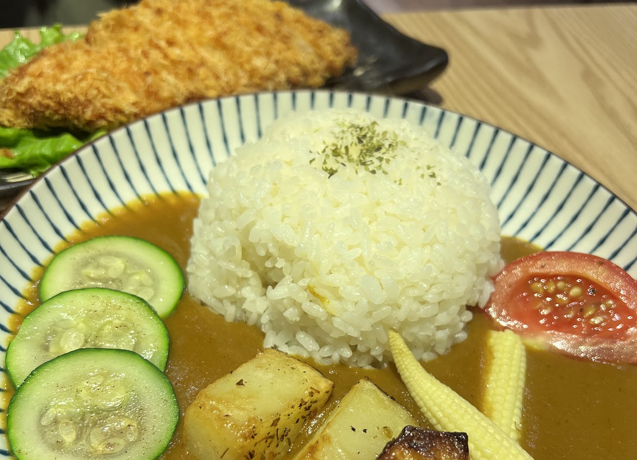 咖哩飯不會辣這點很感謝,平常吃的日式咖哩飯都會辣,這間咖哩蠻濃郁的。