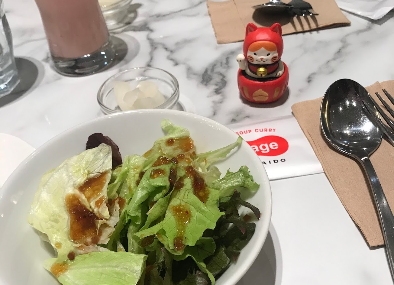 餐前沙拉清爽,咖喱中的蔬菜幾乎都是先烤過因此熟度適中,白飯煮得非常好吃!