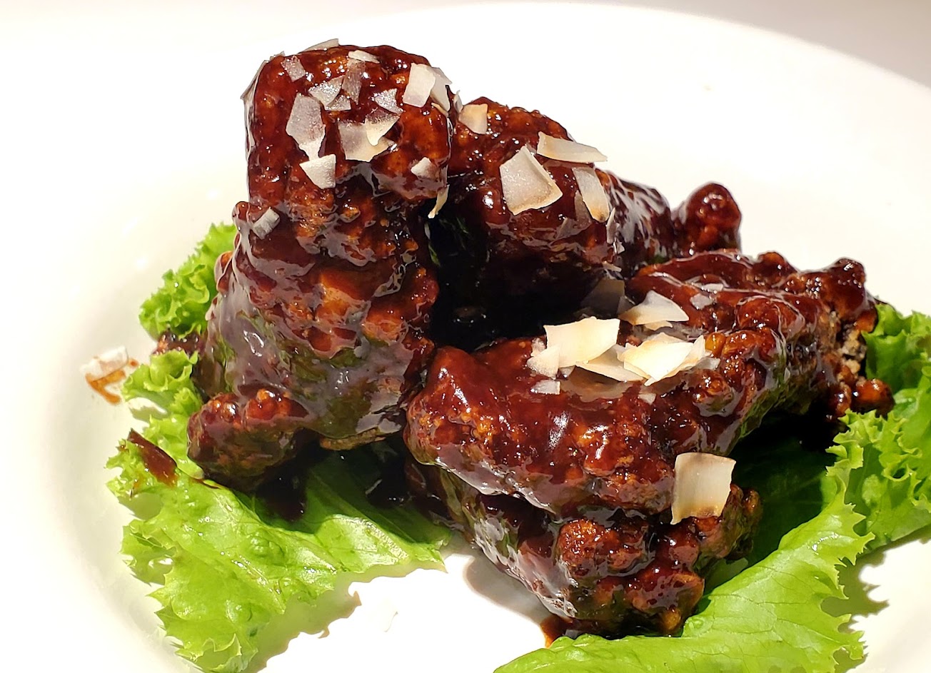 咖啡排骨,口味偏甜有咖啡的香,但吃不太到肉,酥皮後面就是骨頭了,個人覺得有點炸過頭,皮太硬肉太少。這個是最失望的部分