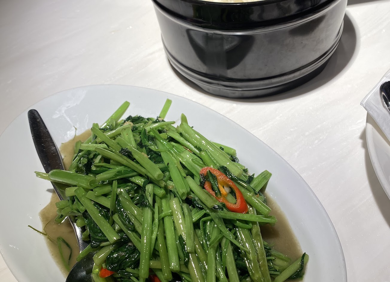 芭蕉葉鐵鍋海鮮香氣十足,可能是跟一些特殊辛香料一起炒。咖哩燒雞濃郁,很下飯。香檸空心菜則分不出跟清炒有什麼差別。至於飯則算人頭,1人45覺得頗高,所以又續了一次,很飽。