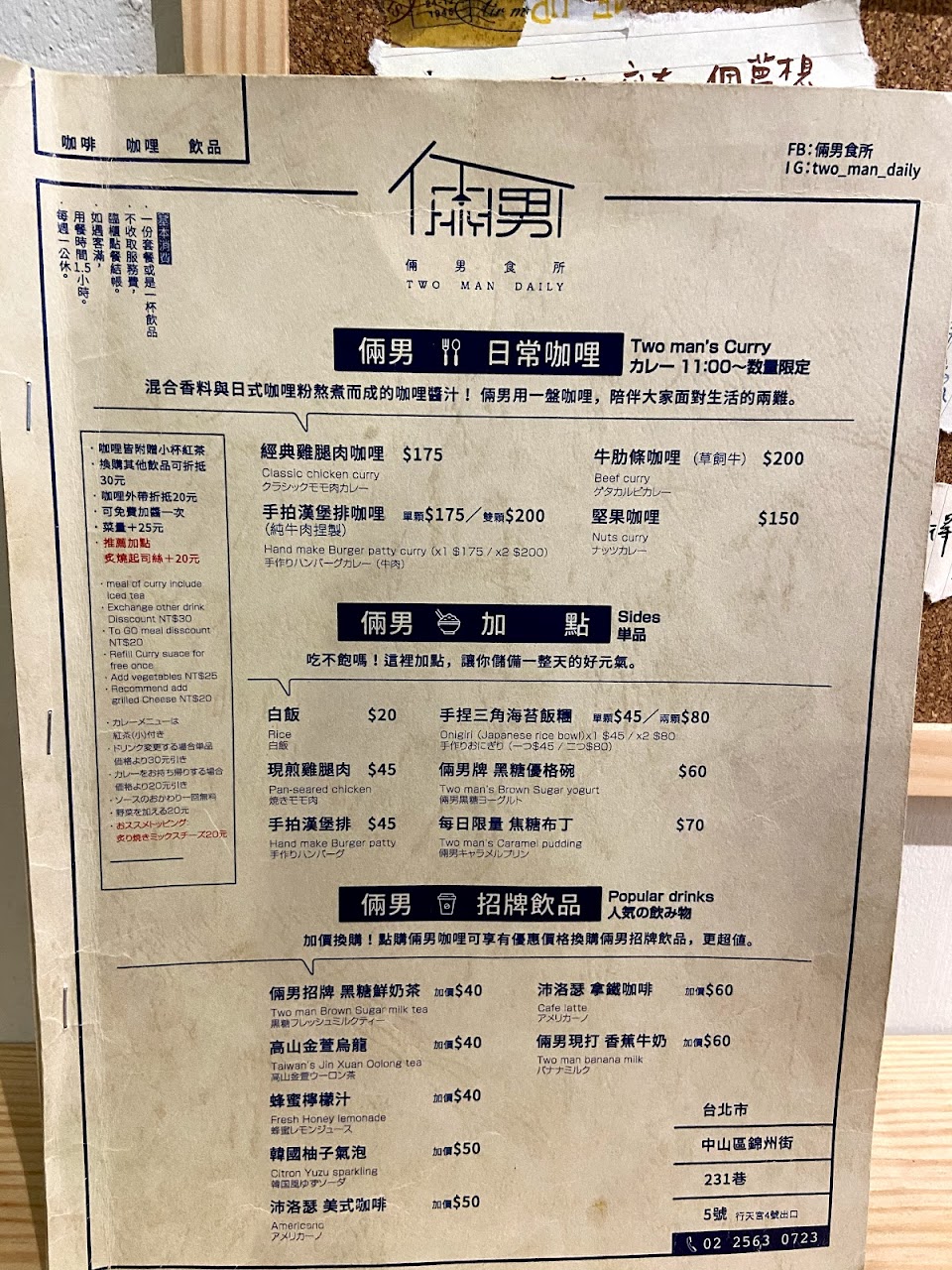 2024最新在地推薦餐廳的菜單_倆男咖啡室(7/1起咖喱僅供應至下午五點)的菜單、圖片