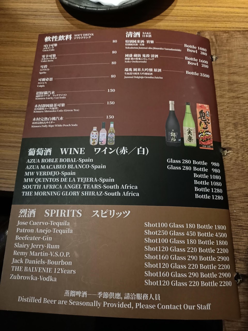 餐點以份量而論,價格比一般居酒屋再高一些。特別推薦炸雞塊跟海膽烏龍~