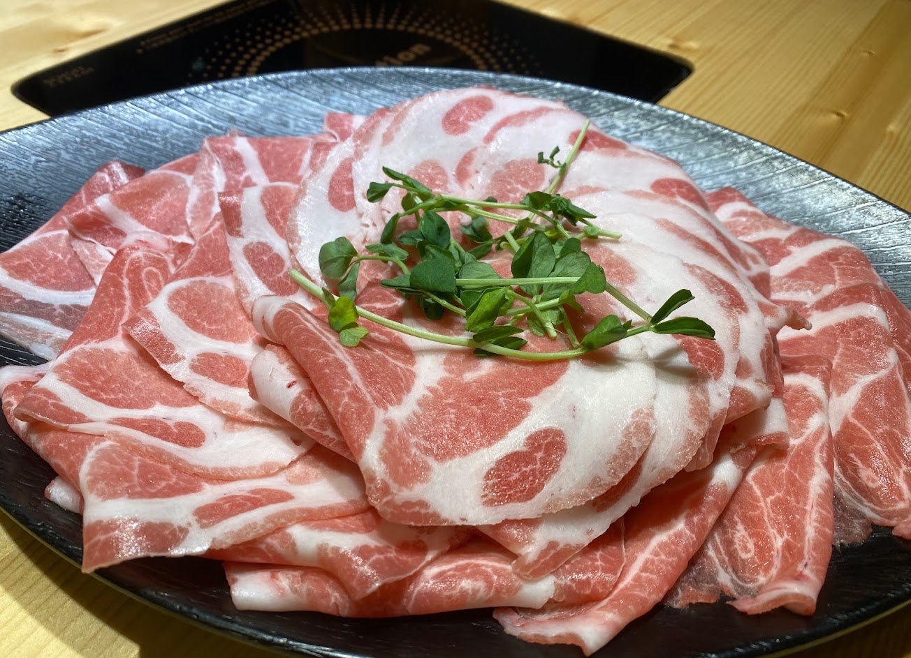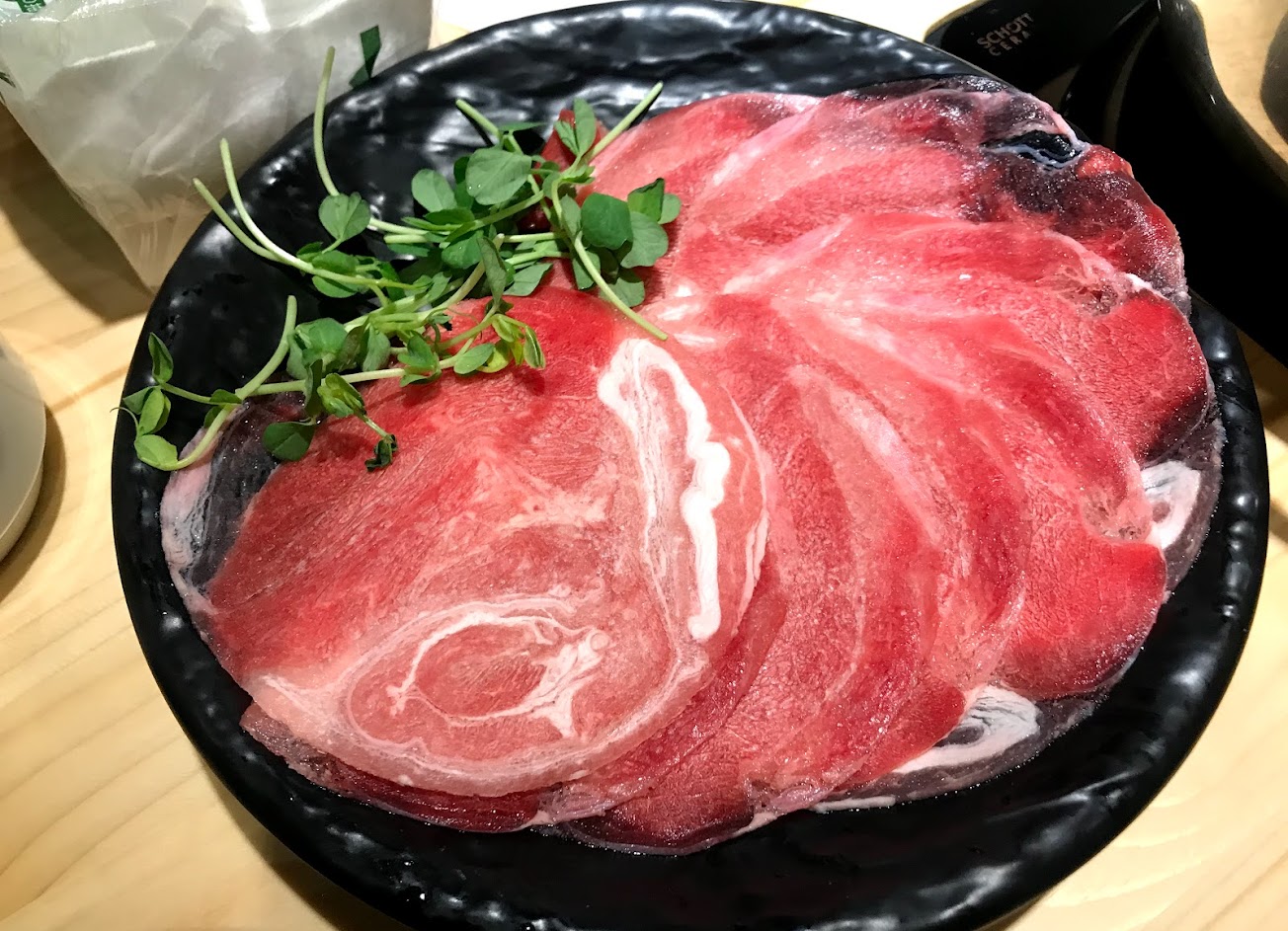 點了三倍肉牛五花和三倍肉羊肉鍋,湯底皆是昆布。