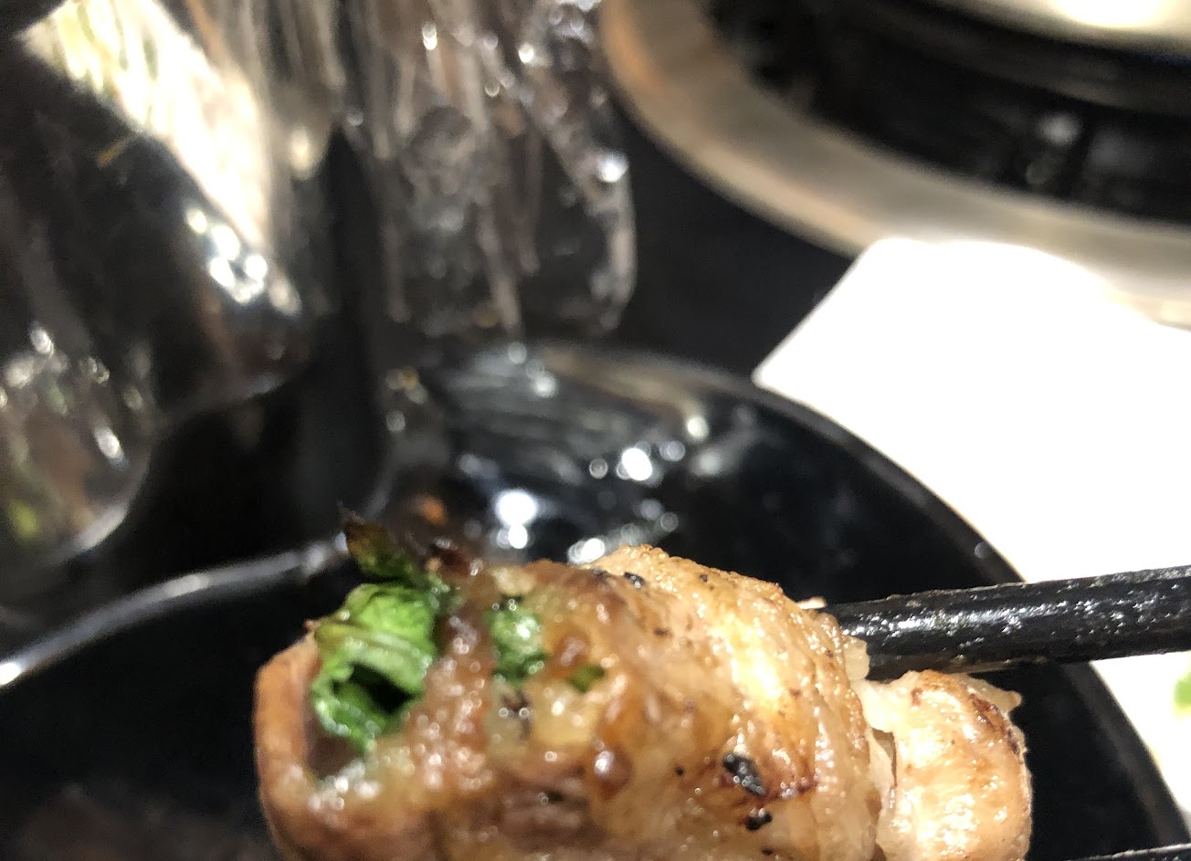 是有稍微特色的燒肉串串店,串串自己拿,燒肉是有的分口味的,有些口味很特別,像是包香菜的牛肉。有些口味蠻鹹的,要斟酌一下。同桌友人還很喜歡玉米筍,是沒有撥開的那種,烤起來比較濕潤。