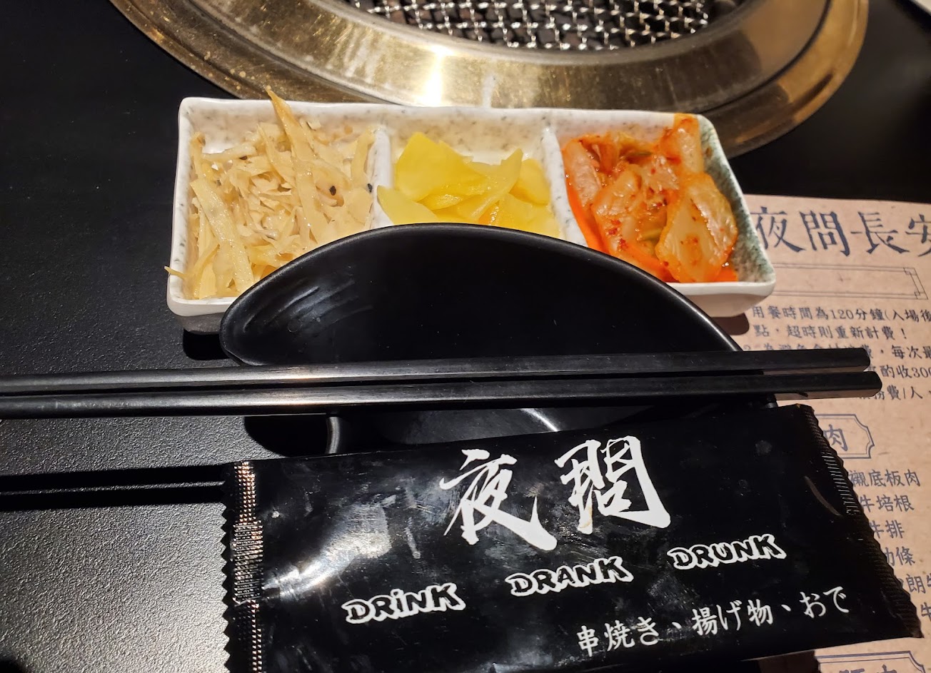 然後就被放生了,連用餐的圍兜都是吃到一半才拿來(店員說她忘了),上肉盤時,也沒介紹是什麼肉?什麼部位?吃得我們很茫然……