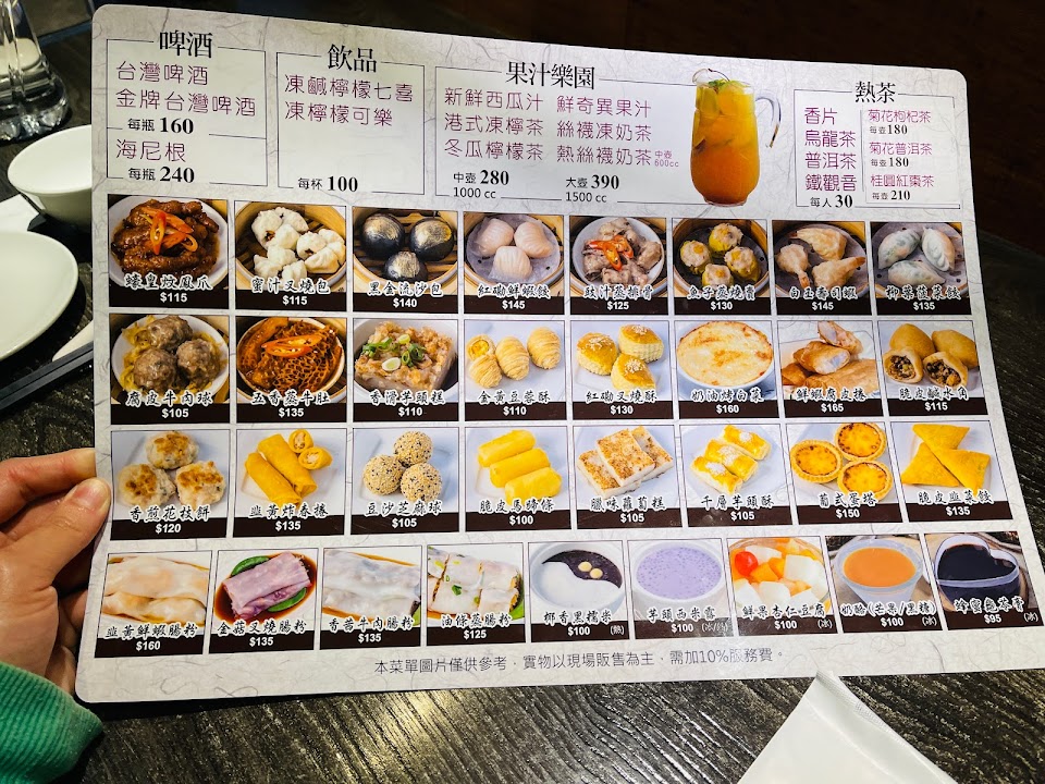 以台北市的價格而言算便宜但是味道一般 菜和港點選擇算多 煎蘿蔔糕好吃可以點 其他如芥蘭菜炒牛肉 鹹魚茄子煲過油 個人不喜歡 腸粉皮過厚 蝦子蒸餃 粉蒸排骨 鳳爪 皮蛋瘦肉粥 奶油焗白菜尚可