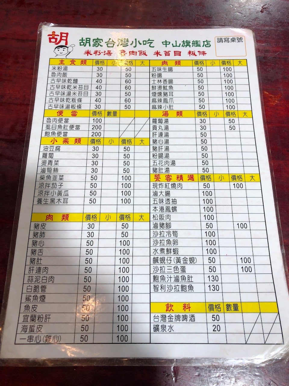 2024最新在地推薦餐廳的菜單_胡家臺灣小吃中山旗艦店/米粉湯/魯肉飯/米苔目/粄條的菜單、圖片