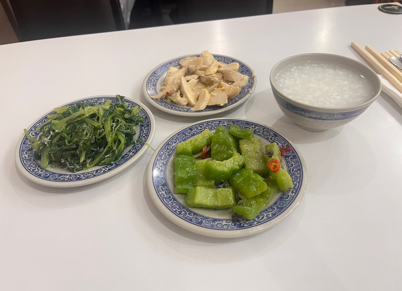 環境乾淨,菜色雖不多元,但每道菜都蠻家常美味,餐點清淡不油膩,粥以碗計價(10元/碗),在每道菜錢都有標示價格,但價格整理而言較貴,點餐錢可以先看清楚每道菜價格。