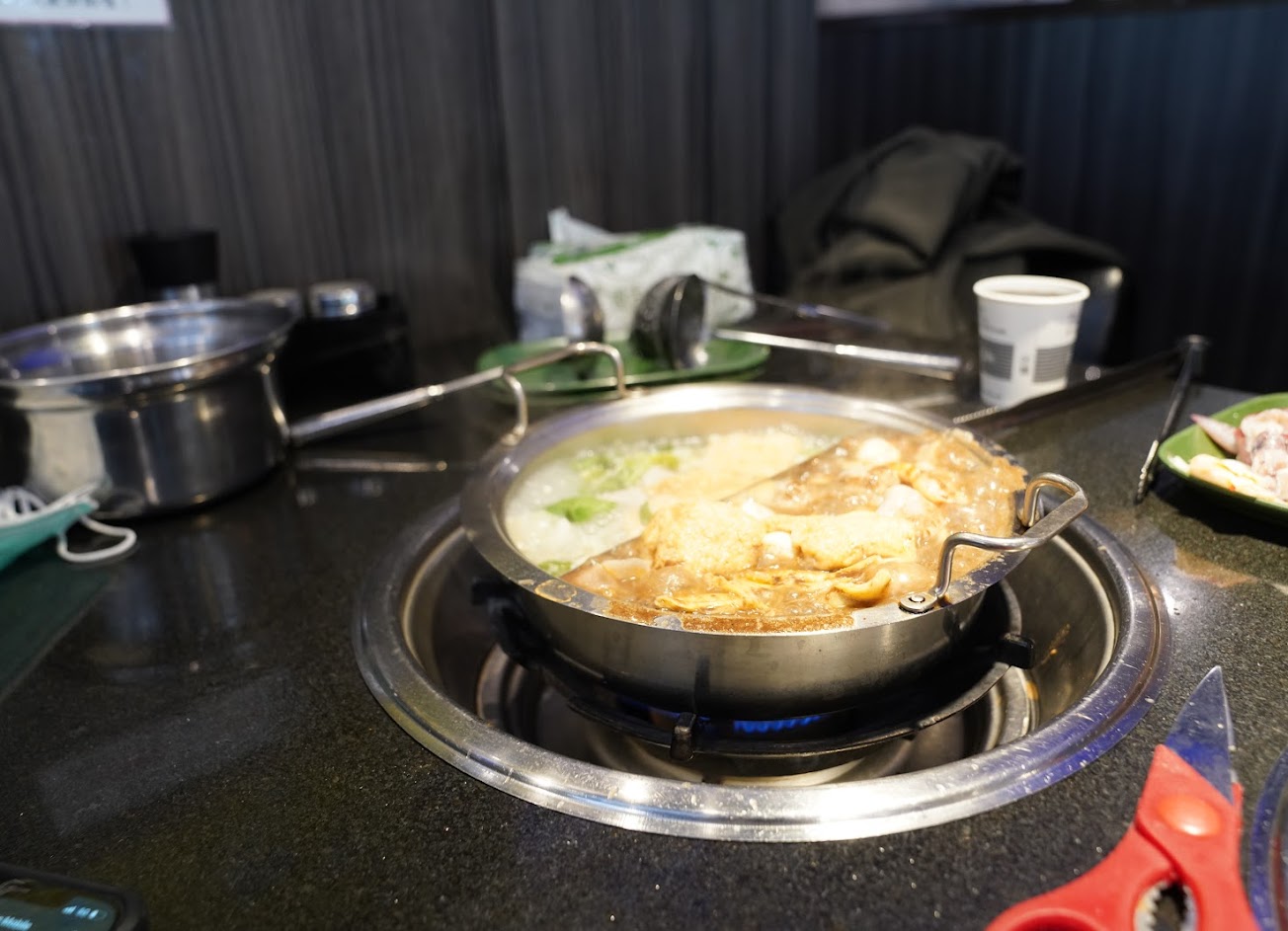 用餐方式是火烤兩吃 火鍋是鴛鴦鍋