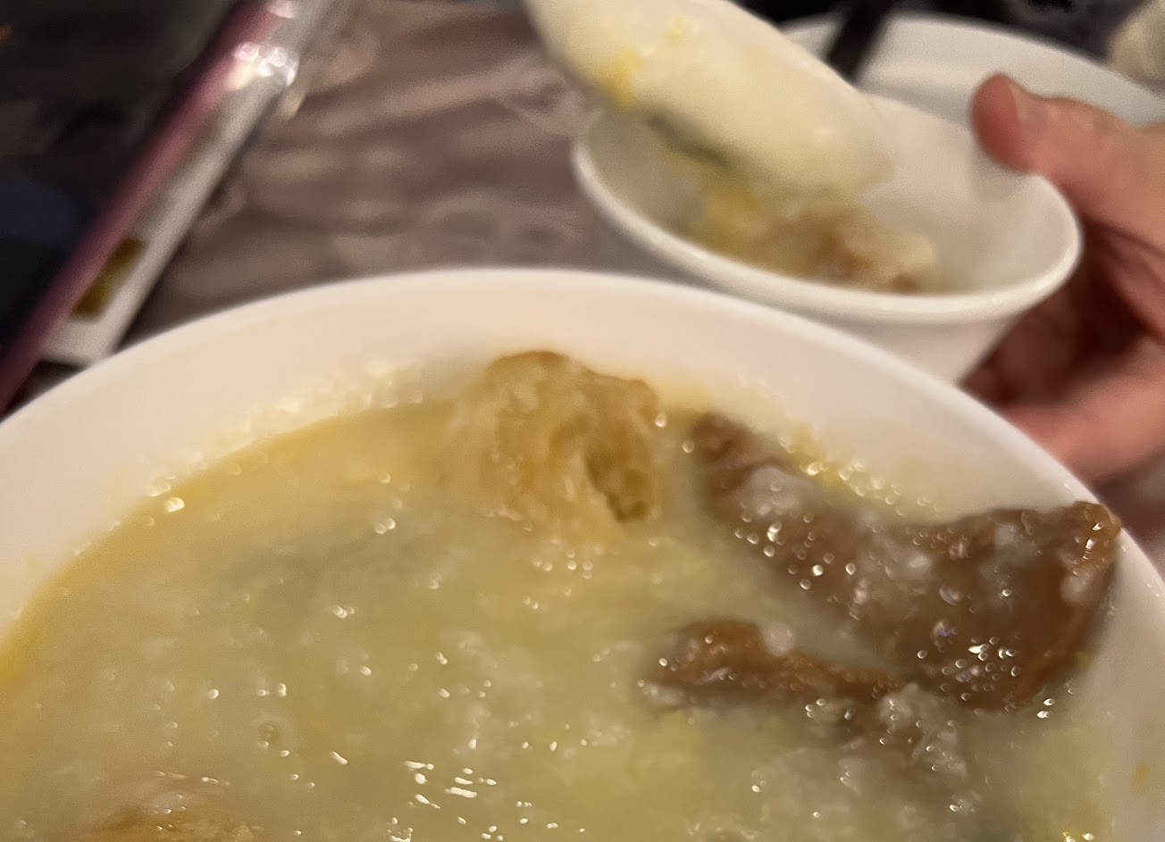 揚州炒飯好吃記得備註少鹽 滿滿蝦仁的腐皮蝦捲好吃 吃起來像香菇醬的松露蝦仁燒賣也不錯吃 蘿蔔糕普通就溫溫的不熱 最失望的是皮蛋瘦肉粥: 一上桌立刻舀來吃結果 上面到中間是冷底層有點溫感覺像放久冷掉的,因為炒飯跟粥同時上,炒飯是熱騰騰而粥是冷的,覺得很疑惑? 餐點:3 服務:3 氣氛:3