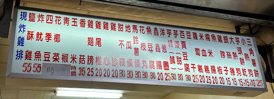約9:45到現場點完餐再去便利商店。10分鐘後回到現場看到我的餐還沒炸、想說現場等的人很多也不想催促老闆。我就站在餐檯旁邊等了10分鐘、我的還是沒下鍋。 忍不住問了老闆‘’我的餐炸了嗎?‘’ 老闆回‘’要炸了!‘’ 然後我就坐在攤子前椅子上等⋯其實已經等的滿不耐煩了!結果22:30老闆娘抬頭跟我對到眼說我的餐好了、結果竟然是從旁邊拿來一包已經不知道裝好放多久的餐點給我! 問老闆娘是炸好很久了嗎?她小小聲的說剛剛起鍋在叫的時候沒看到你們,就放到旁邊了。 我真的是傻爆眼!我就坐在你們攤子前面!重點是我根本沒聽到你有在叫客人取餐!我能體諒老闆們的辛苦、但這種作業模式真的是很容易發生這種浪費時間的錯誤!買個鹹酥雞等了快一個小時、而且還是在白等! 真心建議老闆動手做個號碼牌!