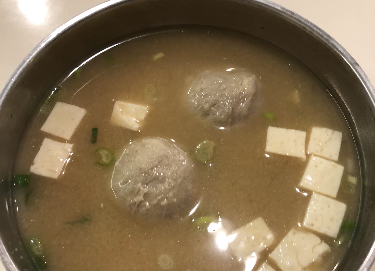 蒜味濃厚,麵條口感也不錯,不算太差但也不驚豔的涼麵。味增湯有點太鹹,蛋花太散。