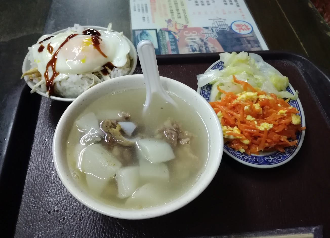 菜頭排骨湯的湯頭清甜,喝完還會想再喝第二碗,雞肉飯的雞肉是有帶點雞皮的雞肉絲,吃起來不柴,搭配荷包蛋是ㄧ絕,老闆人非常好,我的皮包忘了帶走,沒多久後急忙衝出來找我,看到老闆喘呼呼的臉,我感到非常不好意思,很謝謝老闆!!!