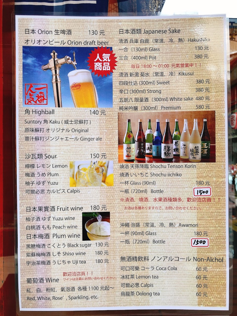 參觀是因為它在周日開放,因為許多商店都關門了。我去了開口,但它逐漸變得擁擠。這似乎是一個受歡迎的商店,有很多飲料。跟日本居酒屋一樣的氛圍,味道也還行,價格也差不多林森北路的價格。我很高興我幾乎 24/7 都在工作。