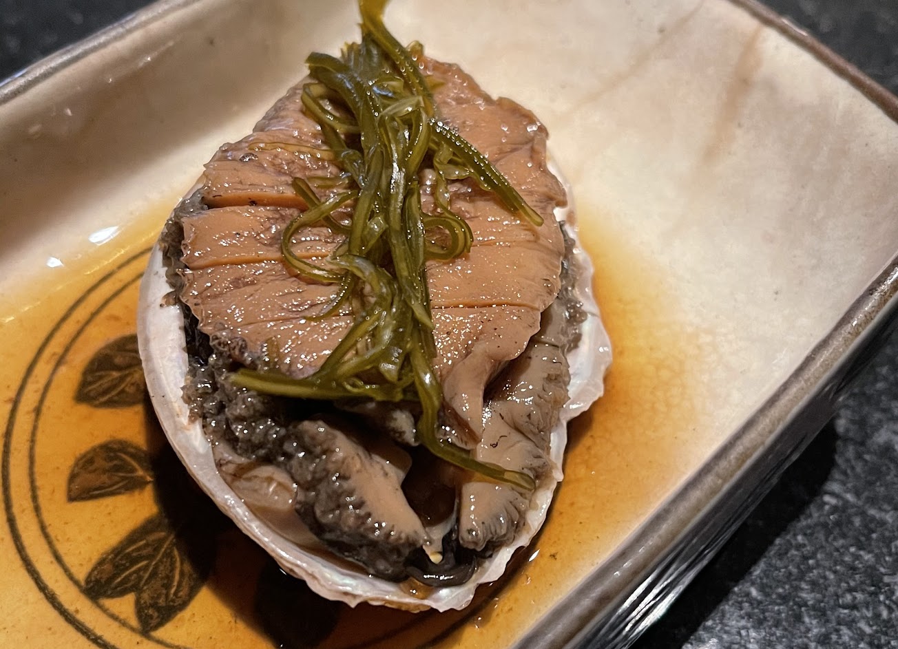 $1600套餐有點貴但滿好吃的,前菜鮑魚,綜合生魚片很新鮮,蒸活龍蝦很鮮甜,貝類跟魚湯都很好喝,蘋果泥涮牛肉很嫩,海膽壽司是滿出來的,比目魚鰭炙燒壽司超讚,熱紅豆湯烤麻吉跟抹茶冰淇淇好好吃,水果有草苺跟水梨超棒