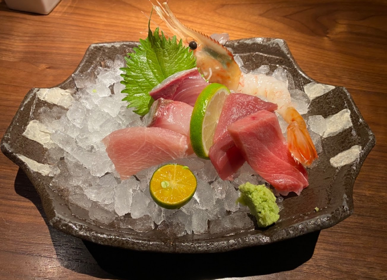 第一次光顧,感覺店裡非常忙碌,其實也比我原先以為的稍微吵雜了一點,服務人員很忙,點菜或是要詢問問題之類的,無法即時找到人服務。食物的部份,這個價位就是很新鮮,其實也算蠻好吃的,可能是第一次去不會點,所以點了套餐,每一個都還不錯,但是就是吃不出那一道菜是主菜的感覺,問了當天一同聚餐的朋友們,當下每一道菜都覺得還不錯,但是吃完總結全部卻又覺得好像還好的感覺,可能是套餐真吃不出什麼是主餐,沒有一道特別特別讓人覺得我要為了這個再來吃的感覺。喜歡生魚片的人可以去吃吃,真的很新鮮,可能建議單點比較好喔!