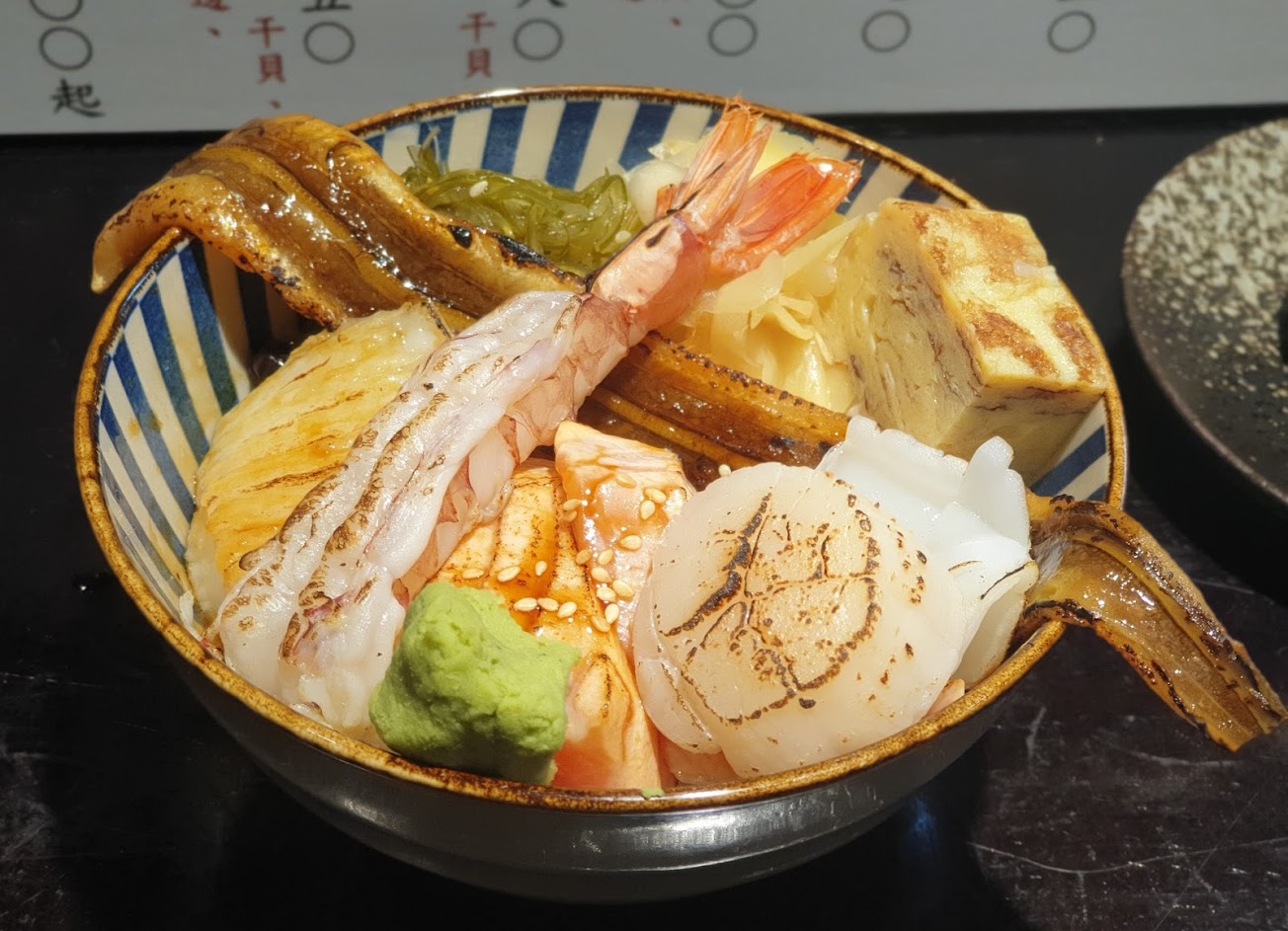 這間店的地址實在風水不好,過去沒有店家可以撐超過兩年。但是憑著食材和料理的硬實力,這間丼飯做到了,我尤其喜歡它的散壽司,好吃。