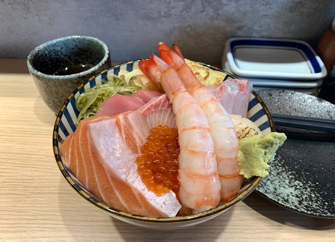 1. 大滿足丼:有多種生魚片、炙燒干貝、天使蝦、花枝等海鮮的丼飯,其中天使蝦口感軟糯味道鮮甜,鮭魚卵彈牙味道濃厚最令我印象深刻