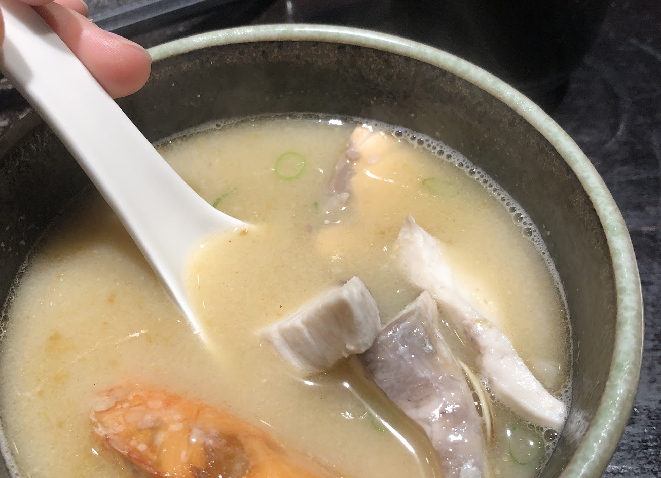 味增湯裡面還有白蘿蔔、魚肉(有刺),可以加湯。