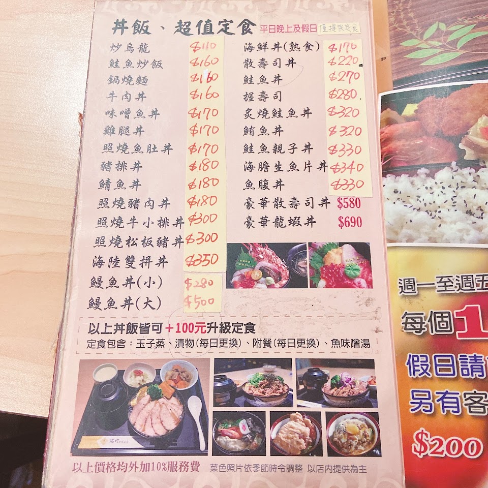 食材吃得到新鮮 , , 店裡還有活龍蝦、沙公沙母可做選擇 , 菜色豐富 , 還依照人數設計了多款套餐&合菜 , 定食和丼飯類更是物美價廉 , 洺町高CP值+1