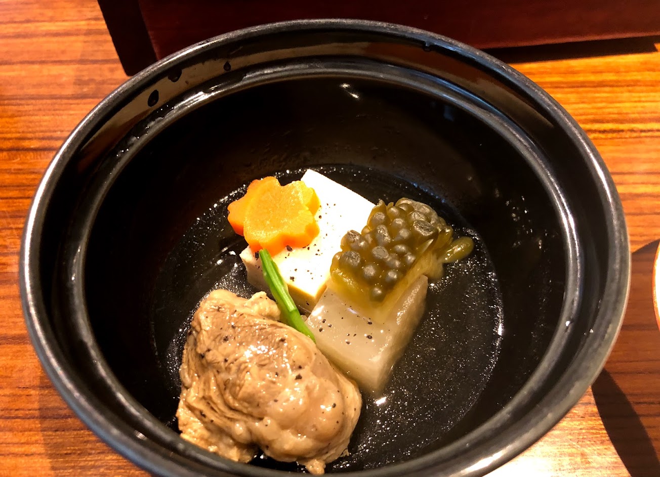 食物調味不錯,服務普通,CP值不高。就是一個吃氣氛和吃錢的感覺。每個餐點都小小的一口,感覺就很小氣,更像是吃剩下的一口擺盤(如照片,我很盡力的想讓照片看起來餐點很大)以下餐點約三千二百元,吃完大概8分飽吧!店內空間不大,請先預約。是一個在地人吃一次就不會想再去的店,可能主打外國、日本客人吧!