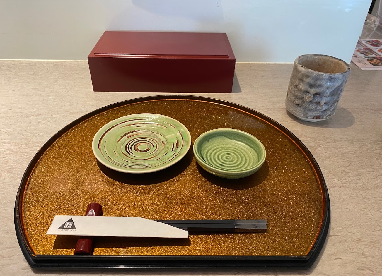 包廂裡享用炸物,壽司,甜點組成日式午茶,搭配一款茶品,外加一碗苦抹茶配甜點,精緻美味。