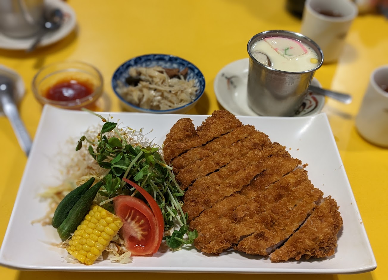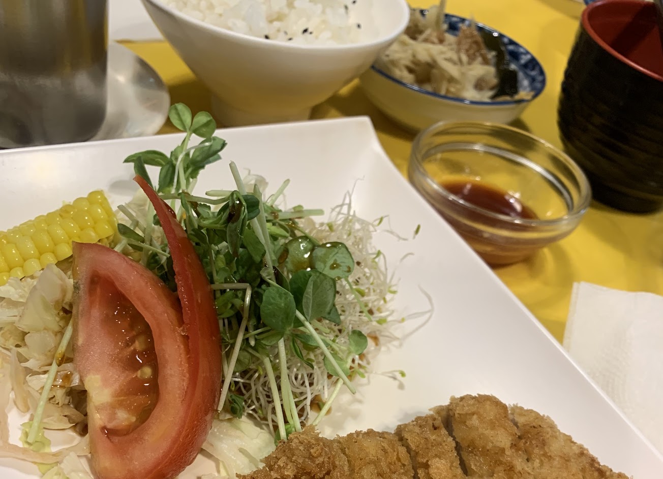 豬排定食很好吃,豬排大塊又炸得剛剛好,外皮酥脆裡面也不會柴,店內也有好喝的味噌湯跟茶自己裝,值得再去!