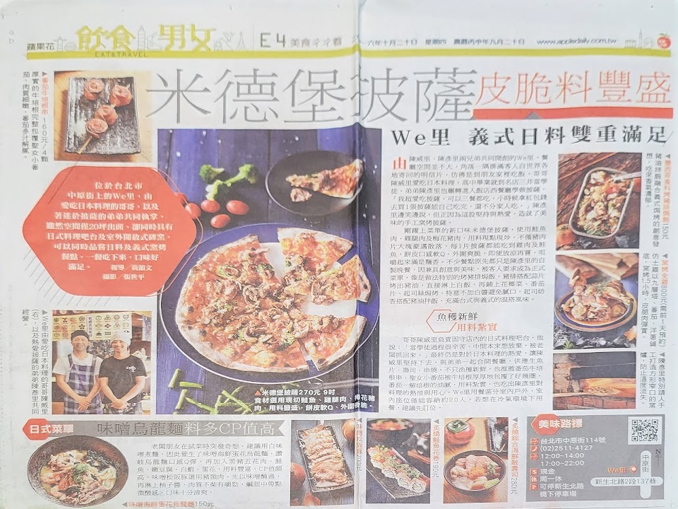 2024最新在地推薦餐廳的菜單_WE里手工pizza 日本料理 串燒的菜單、圖片