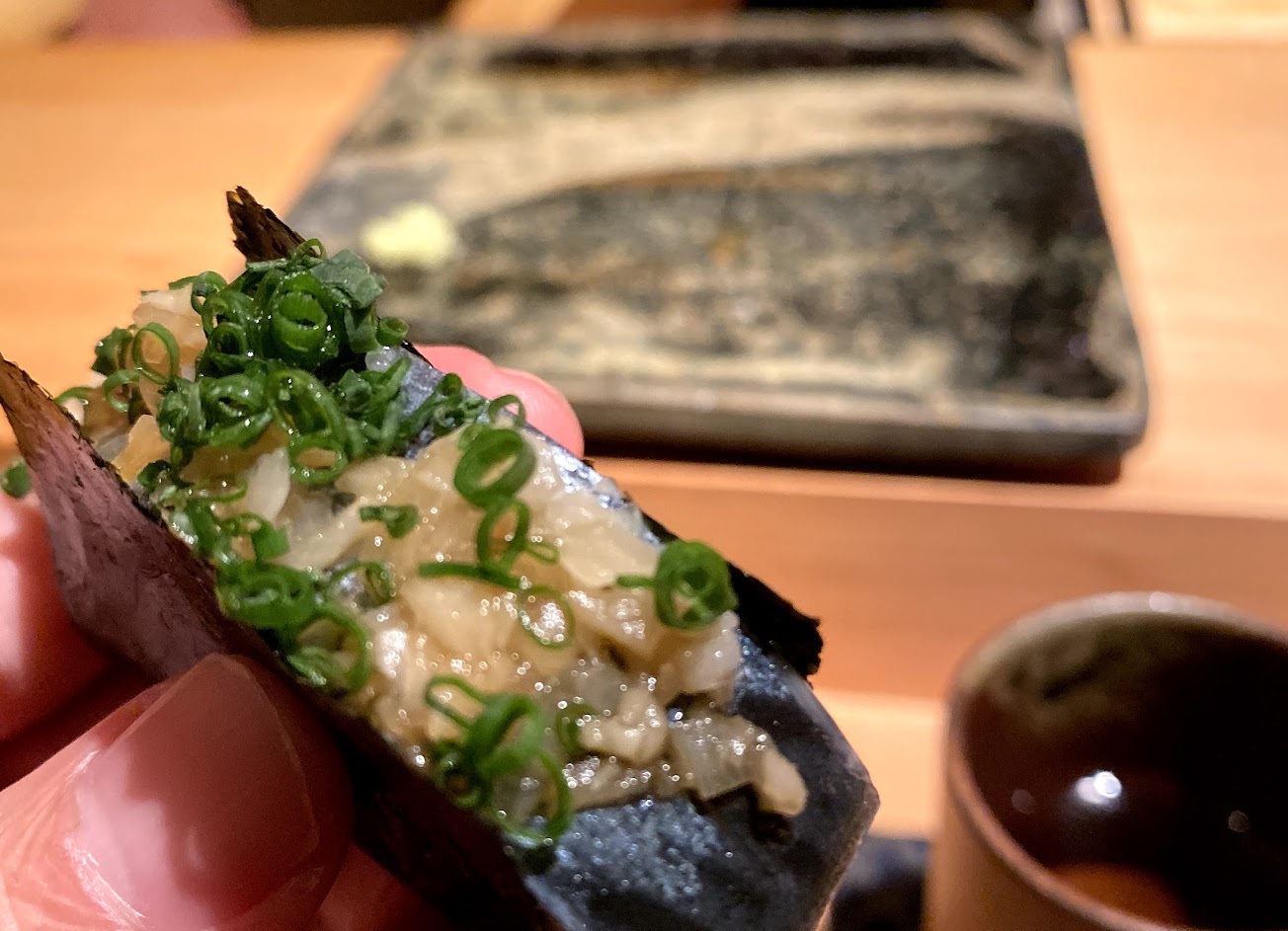 我們選擇晚間4800的套餐,裡面生筋子最好吃,其他都一般般,忘記是哪個魚居然吃到魚鱗沒有處理乾淨,反應之後換一道,還是有魚鱗,真的不知道在幹嘛,就抱歉抱歉就繼續下一道了我真是傻眼。