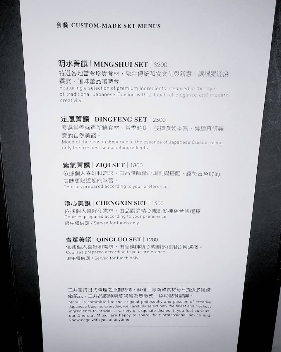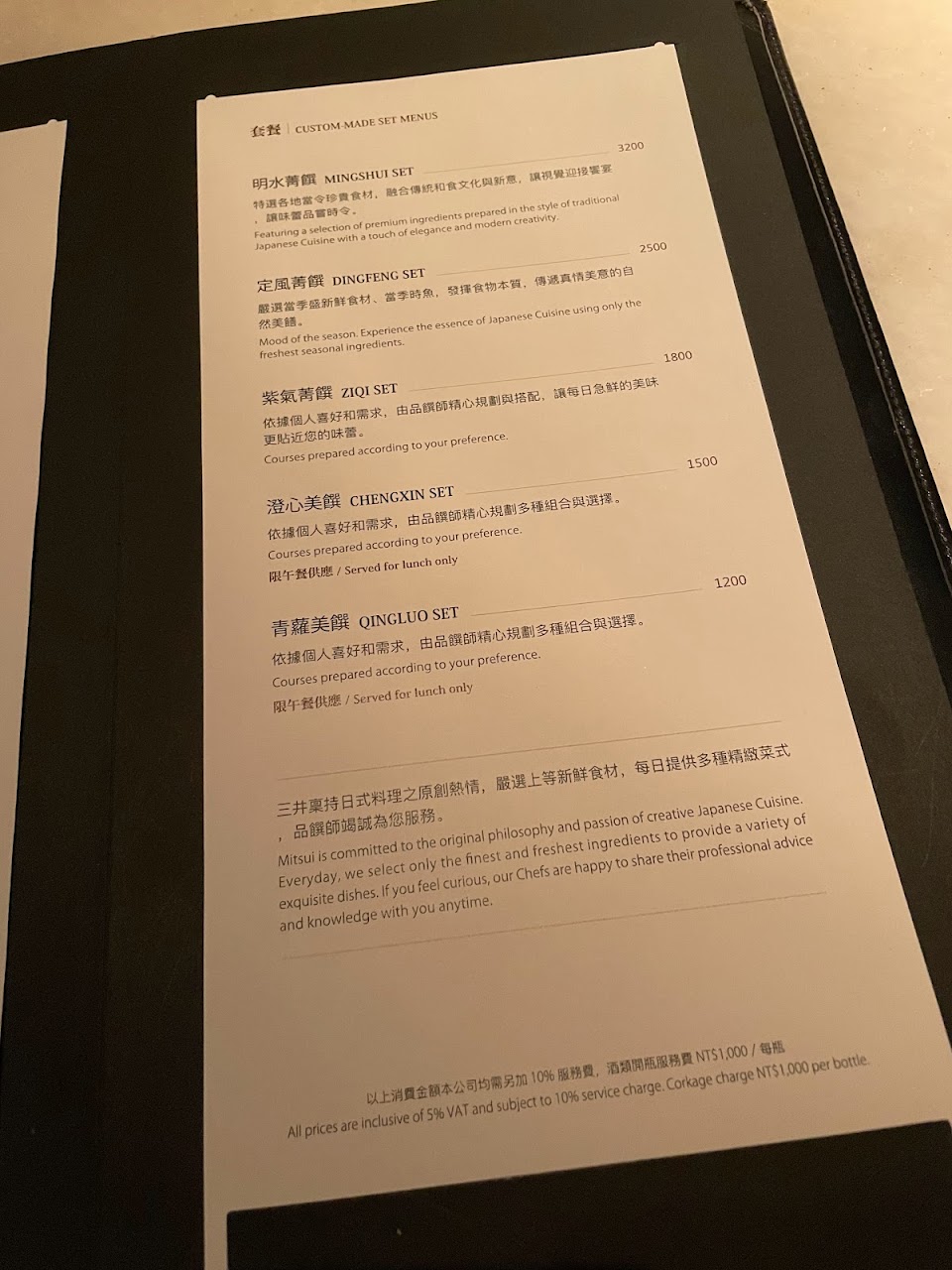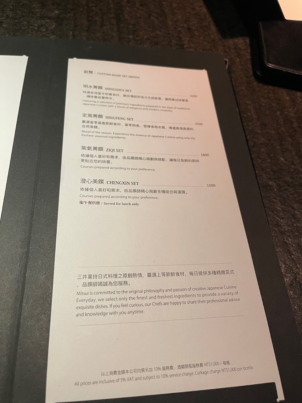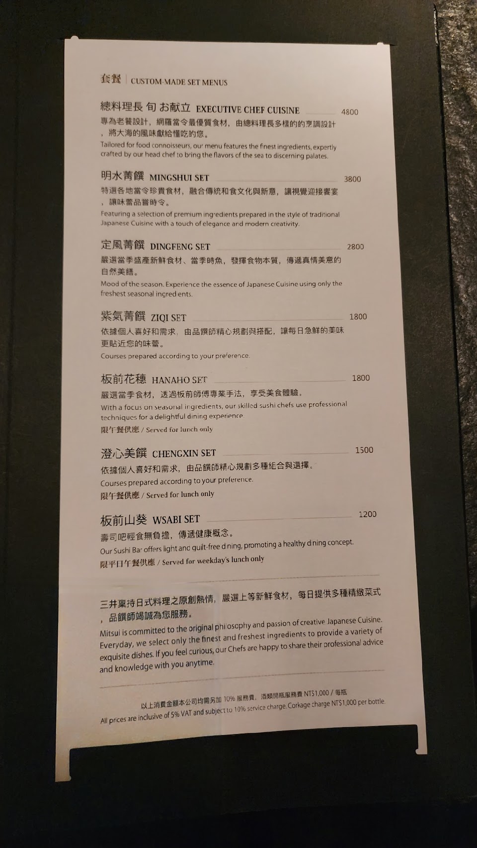 期待已久三井,應該是高級賓至如歸的期待,結果,服務超爛,等很久,基本上吃日式料理應該都要有免費茶水,但這邊連一般水都沒提供。