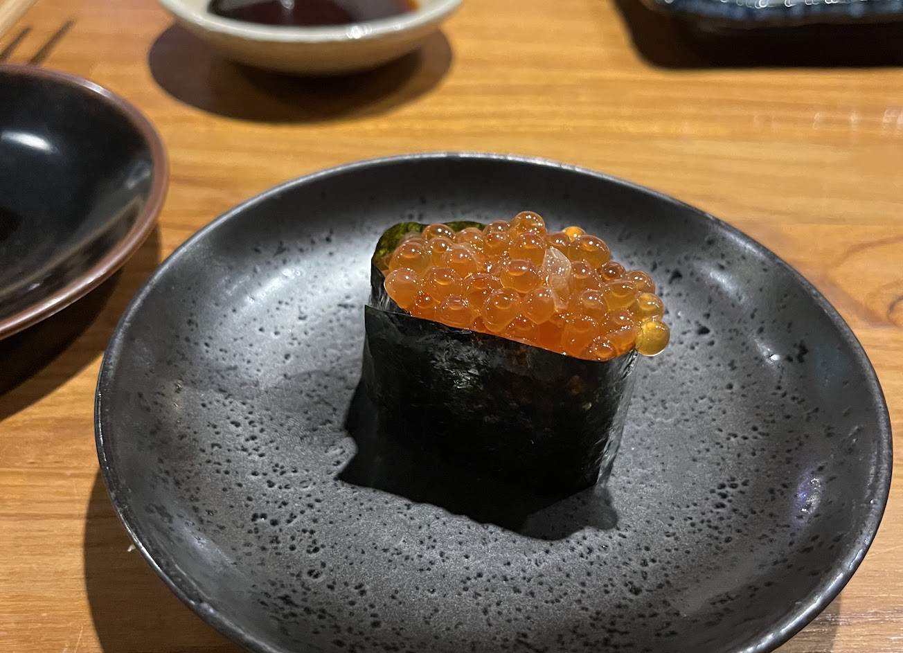 一人吃一塊玉子一片鮭魚和一個比目魚鰭邊握壽司,兩人再share一個茶碗蒸和一個干貝 加上梅酒人均快八百 cp好低 而且最貴的干貝好普通 不會再回訪這間 但應該還會去吃游壽司的無菜單