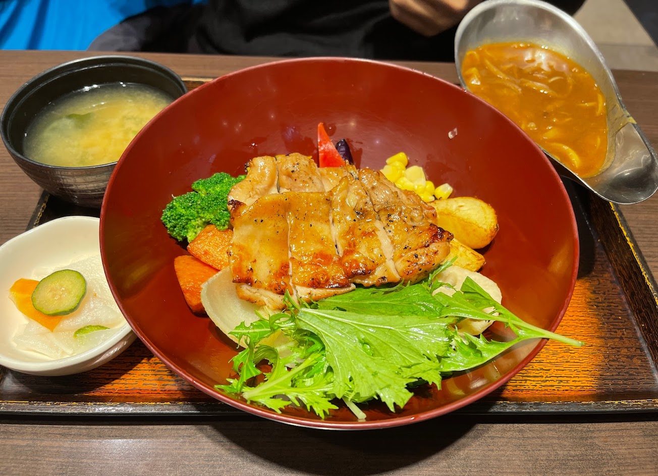 餐廳空間乾淨舒適,服務真好很用心。店裡3點營業我到這裡快2點,這家的白飯和味增湯可以隨吃,點餐的時候店員說如果有需要多加飯和白飯2點半以前跟她說,我們本來不想多加所以沒有跟他要,等一下還有一位店員來問你有需要加飯和湯嗎?,哈哈 超認真的啦,還是多加一碗比較好因為他的咖喱超下飯的啦!
