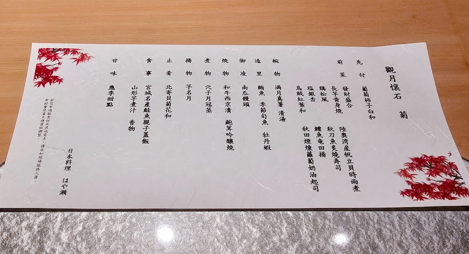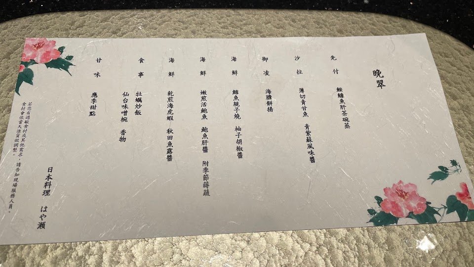 第一次到HAYASE用餐,去電訂位時Peggy很有耐心又親切的說明用餐方式跟費用。