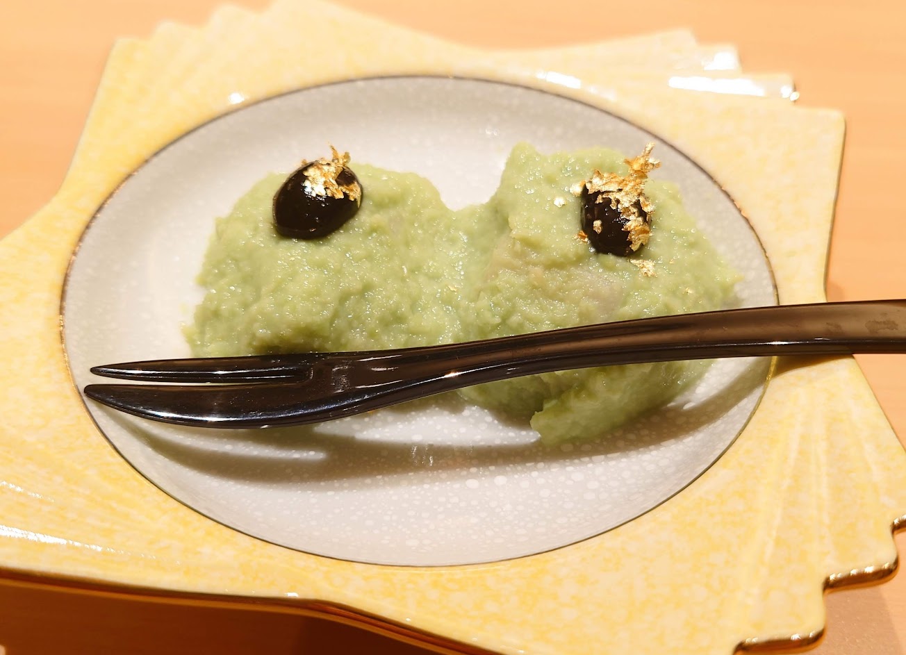 檯前可以看到廚師忙著擺盤備餐,但多數是從檯下的冰箱拿出來,少了那麼一點檯前割烹的溫度⋯。