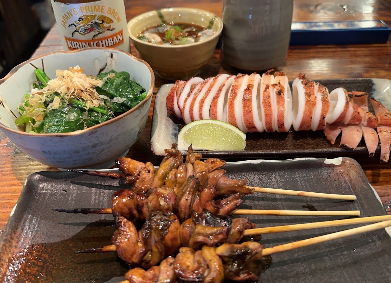 不只是鰻魚飯,這家小店的其他菜品也同樣精湛。比如經典的烤肉串、鹽烤魷魚等等香嫩可口,每一口都是美味。